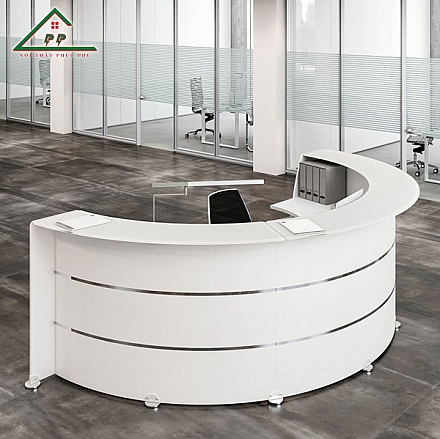 Bàn quầy lễ tân PP01 do Nội Thất Phúc Phú sản xuất luôn dẫn đầu xu hướng về kiểu dáng hiện đại, thời thượng phù hợp với hầu hết các không gian sảnh văn phòng. Không những vậy, mẫu bàn này còn có những ưu điểm nổi bật như: